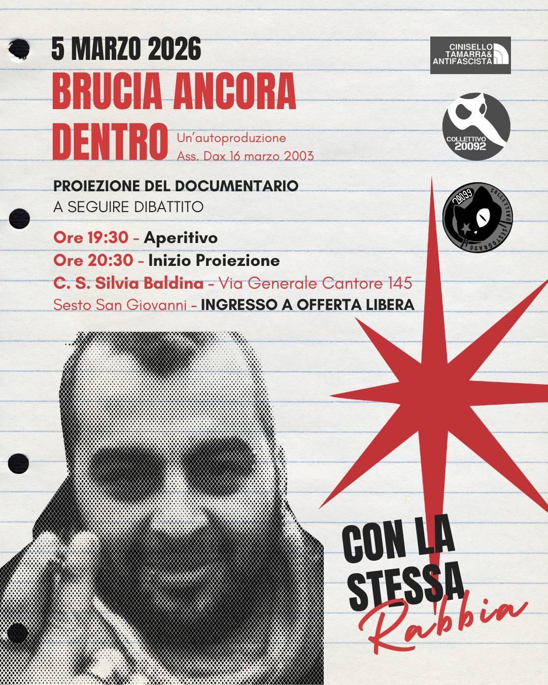 Giovedì 5 Marzo proiezione di: “Brucia ancora dentro” al centro culturale Baldina ❤️🔥